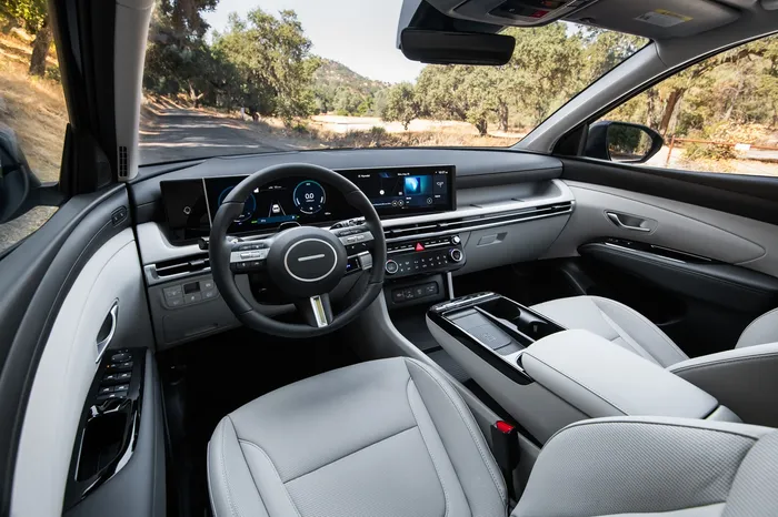 Q2. How does the 2025 Tucson Hybrid's interior technology compare to previous models? The 2025 model introduces a curved dual 12.3-inch display setup, combining a digital instrument cluster and infotainment touchscreen. It also offers wireless Apple CarPlay and Android Auto across all trims, addressing previous connectivity limitations.